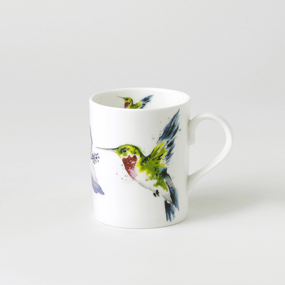 A set of 3 “Lucy” shape fine bone china mugs with beautifully illustrated Hummingbirds feeding from a Columbine Flower.